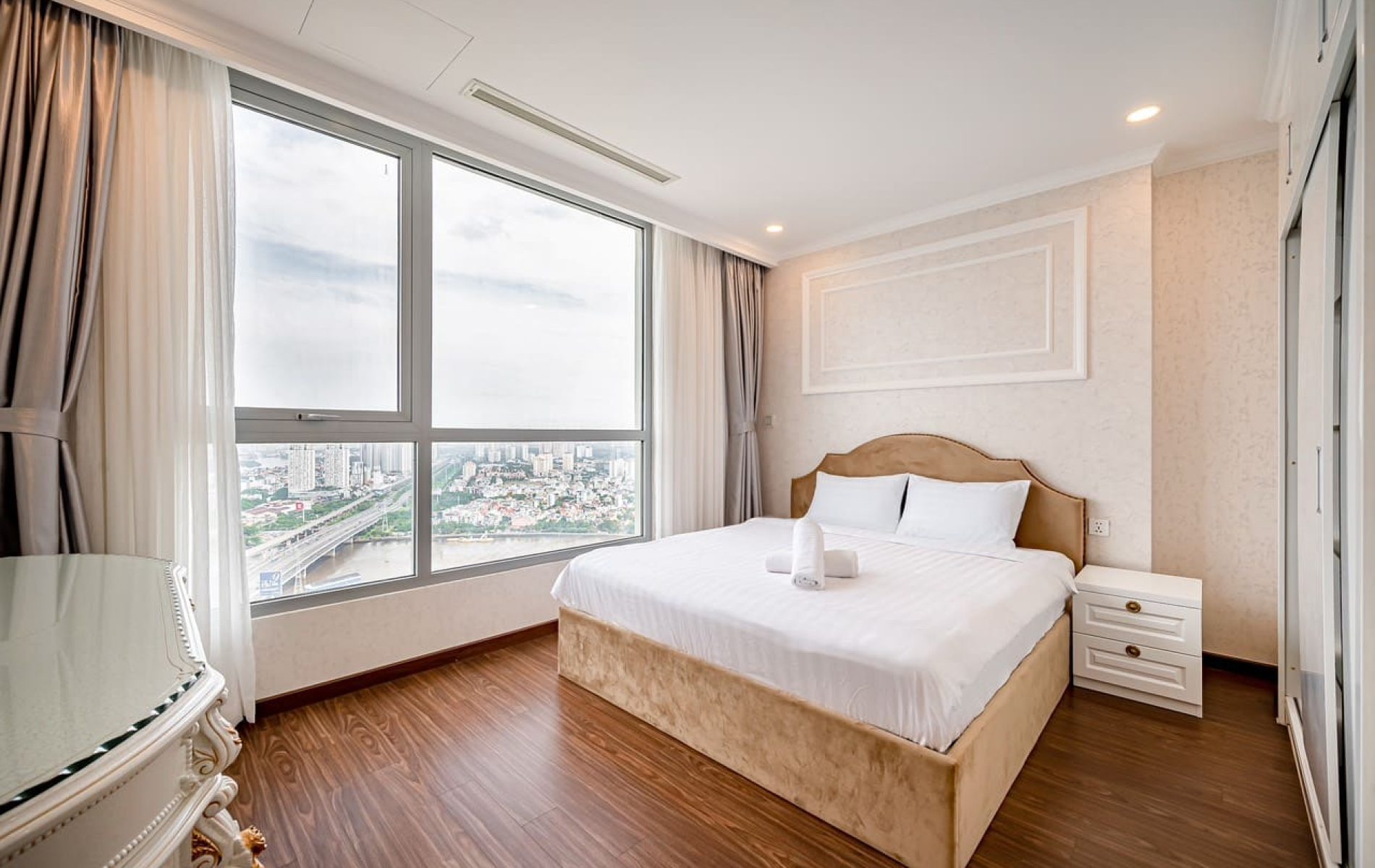 Chào mừng quý khách đến với dịch vụ cho thuê căn hộ Landmark 81, một trong những tòa nhà cao nhất và sang trọng nhất Việt Nam. Với tiêu chí đem đến cho khách hàng một không gian sống hiện đại, tiện nghi và đẳng cấp, chúng tôi cung cấp dịch vụ cho thuê căn hộ ngắn hạn theo ngày với đầy đủ các tiện ích và dịch vụ cao cấp.
